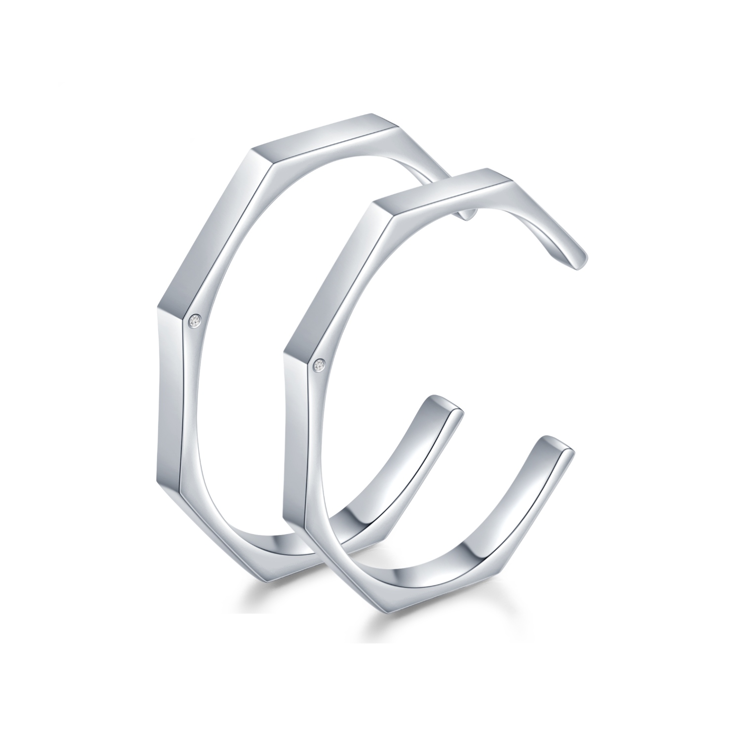 此款情侶手鐲以簡約六角設計,選用925純銀打造,男女手鐲分別側面鑲有精巧單顆鑽石。六角形擁有堅定穩固、平等和諧的意思,象徵平等相愛的戀人,一起並肩成長的愛情。