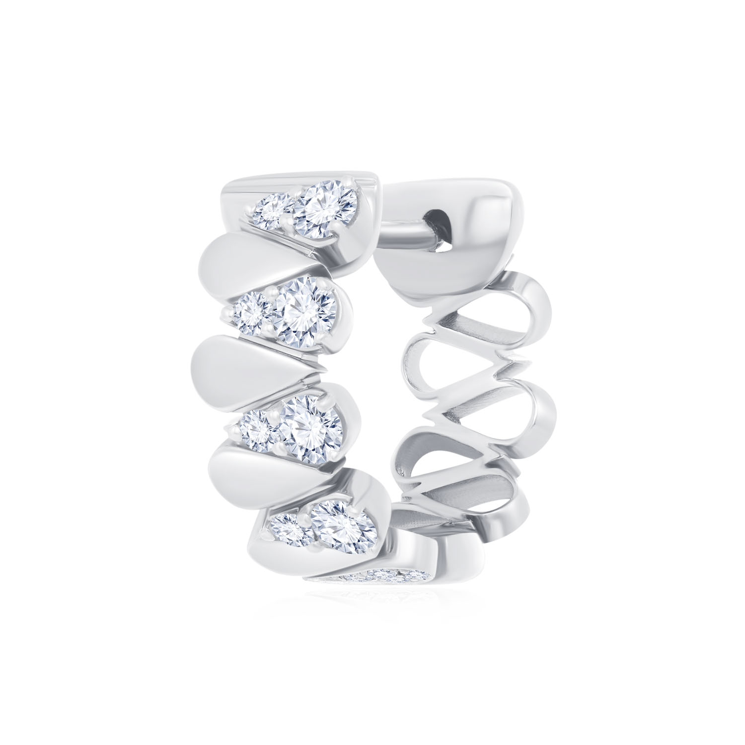 18K 白色黃金天然鑽石單隻耳環