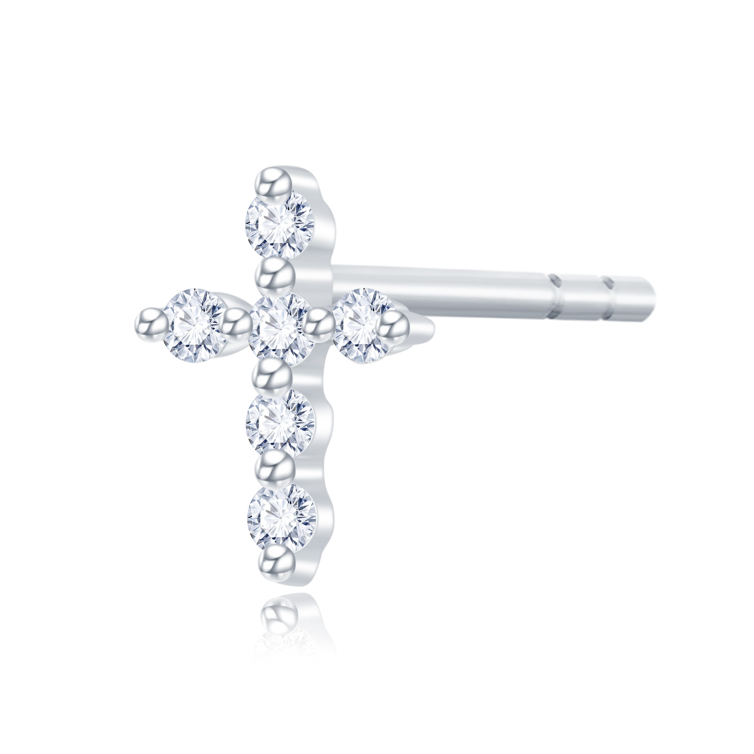 18K 白色黃金天然鑽石單隻耳環