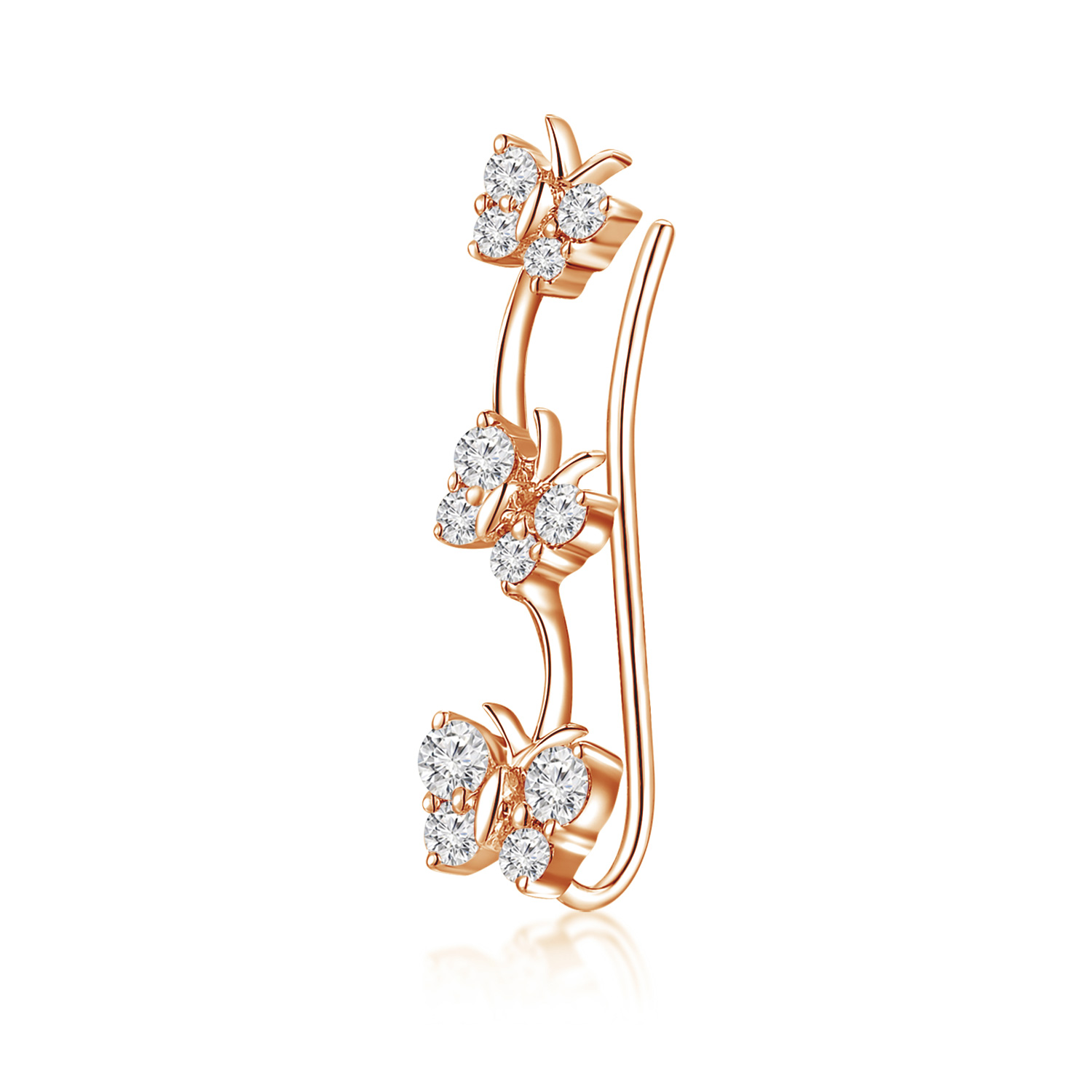 18K 紅色黃金天然鑽石單隻耳環