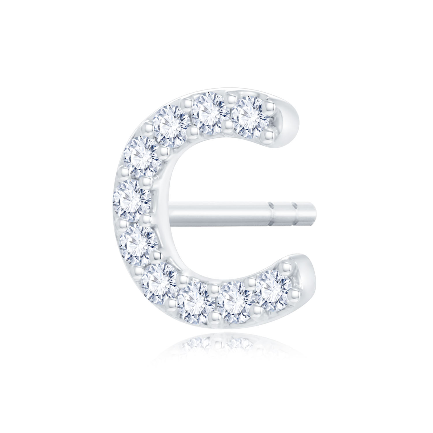 14K 白色黃金天然鑽石單隻耳環