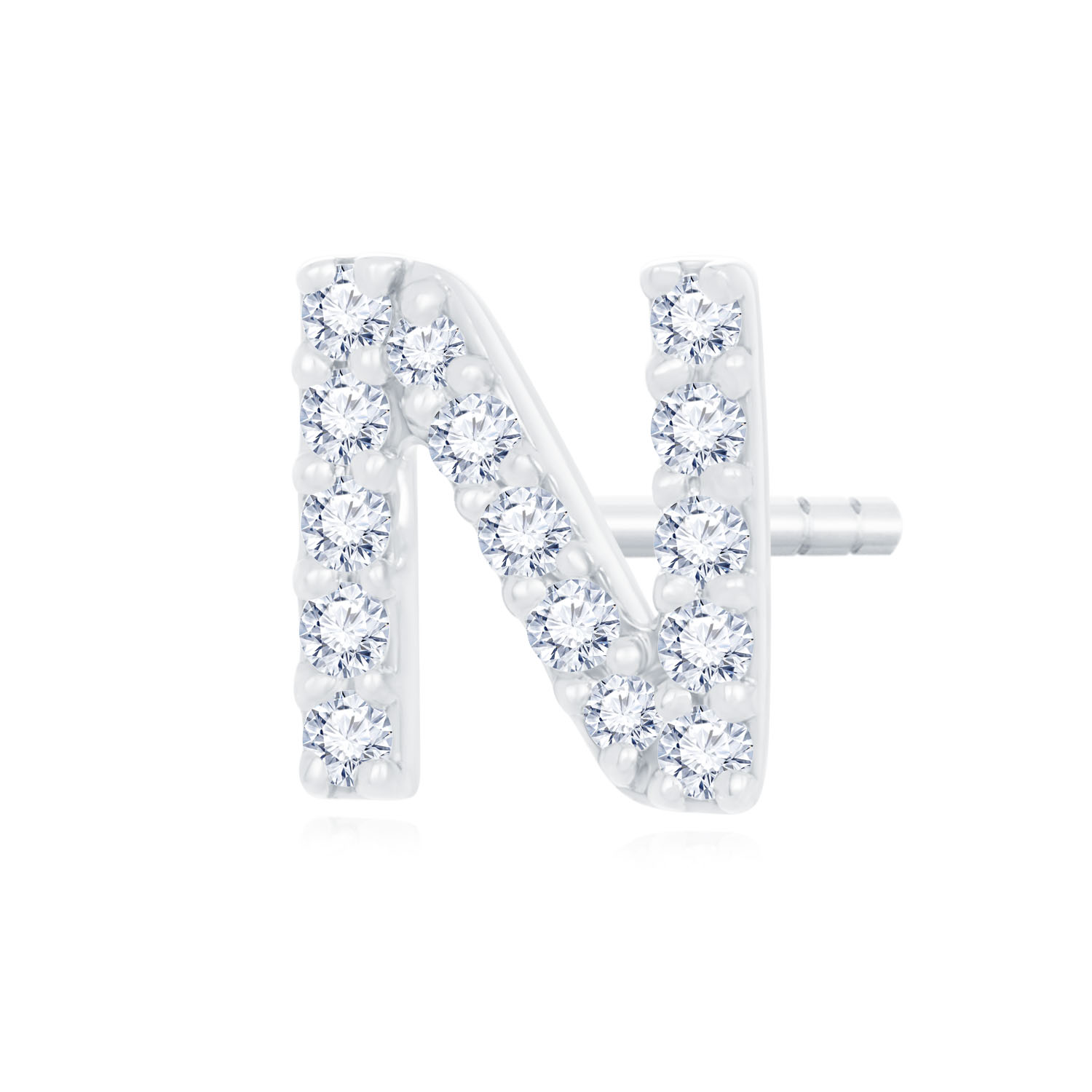 14K 白色黃金天然鑽石單隻耳環