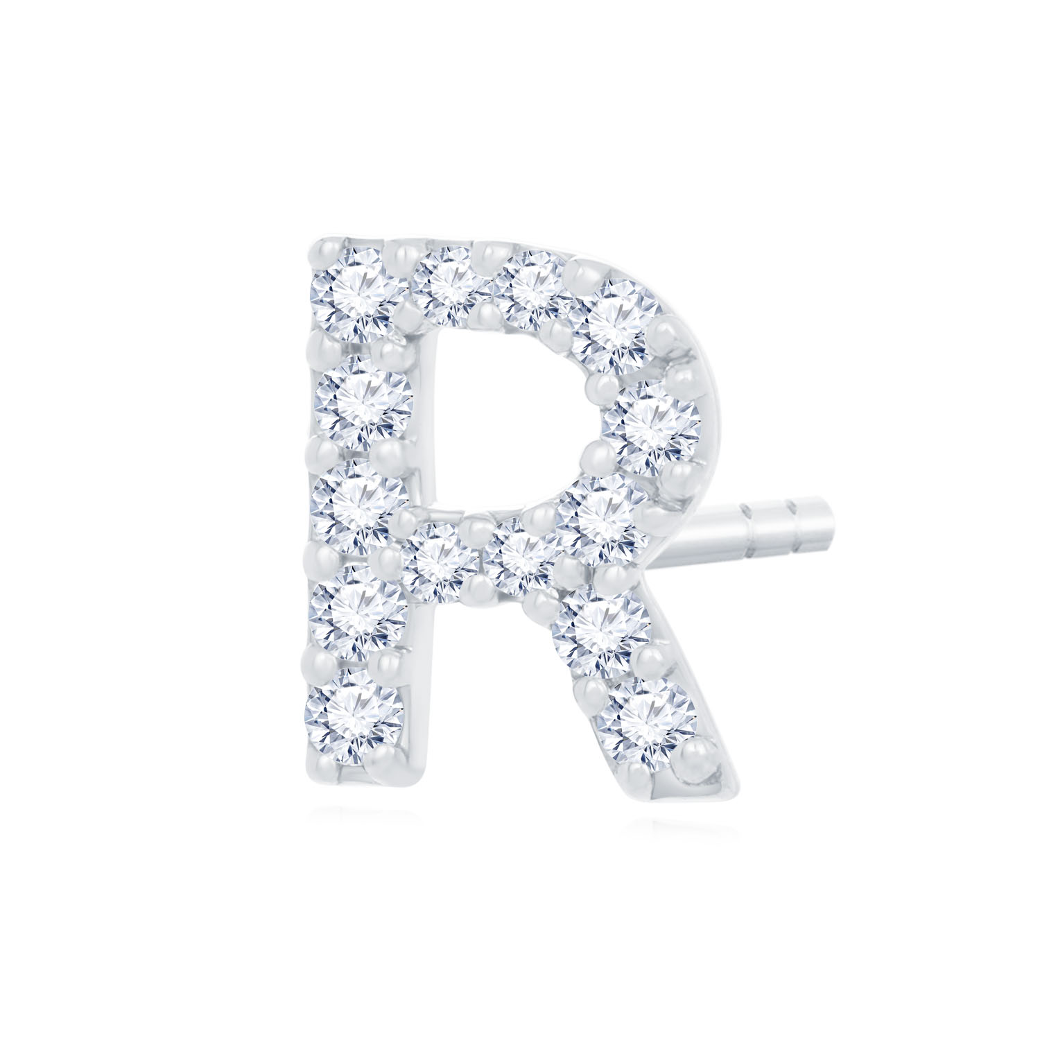 14K 白色黃金天然鑽石單隻耳環