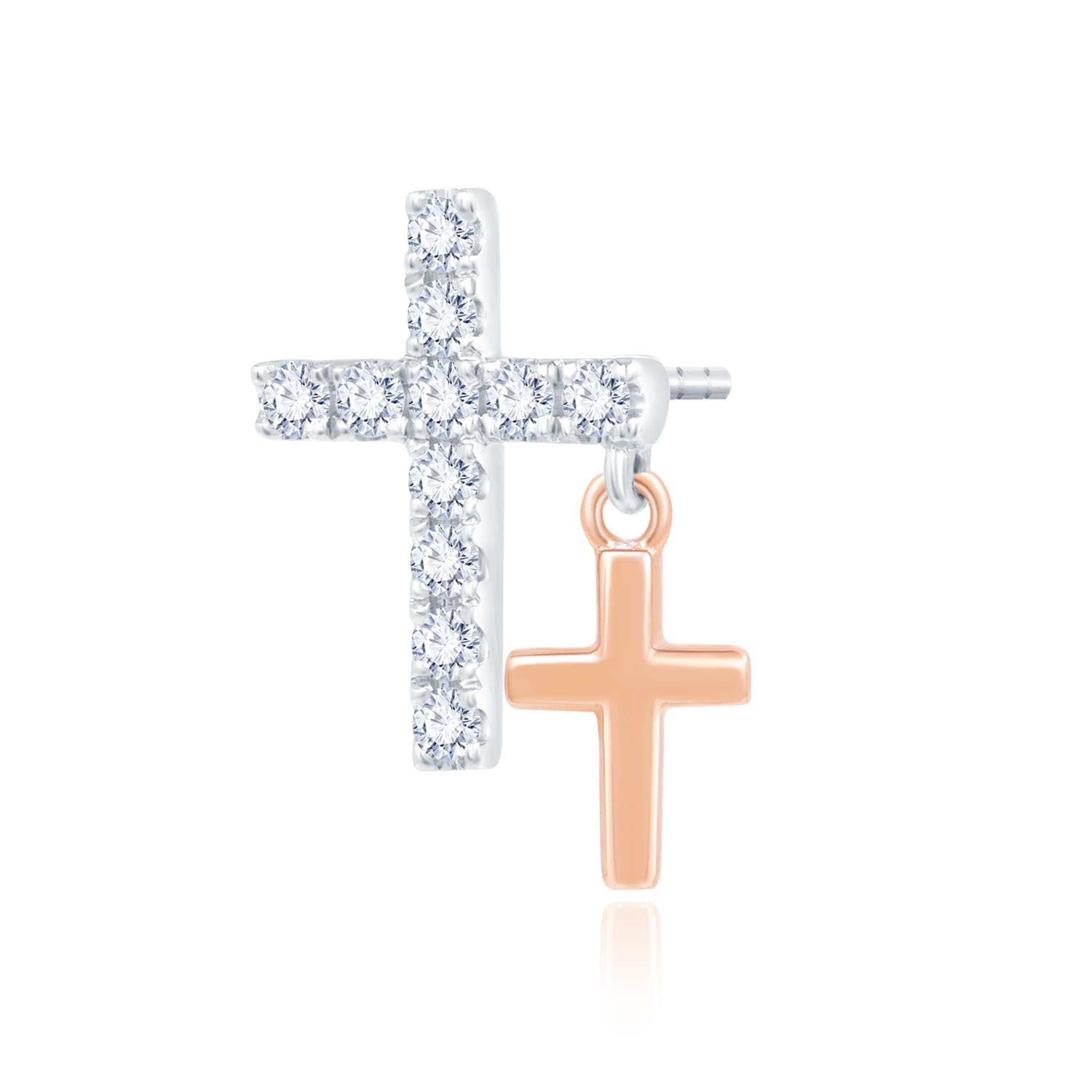 18K 紅白色黃金天然鑽石單隻耳環