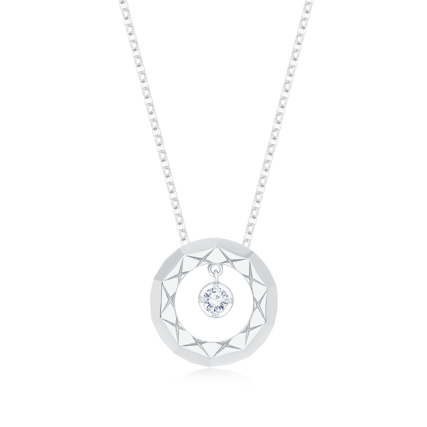 幸福家庭 — 將細水長流的愛化成堅固守護 環形設計包圍中心主鑽,有如天使之環守護所愛; 菱形吊墜以及中心花形吊墜可分拆獨立佩戴,適合不同場合及造型;圓形吊墜中心主鑽則可左右擺動,有如被捧在掌心、閃閃發亮的寶貝。