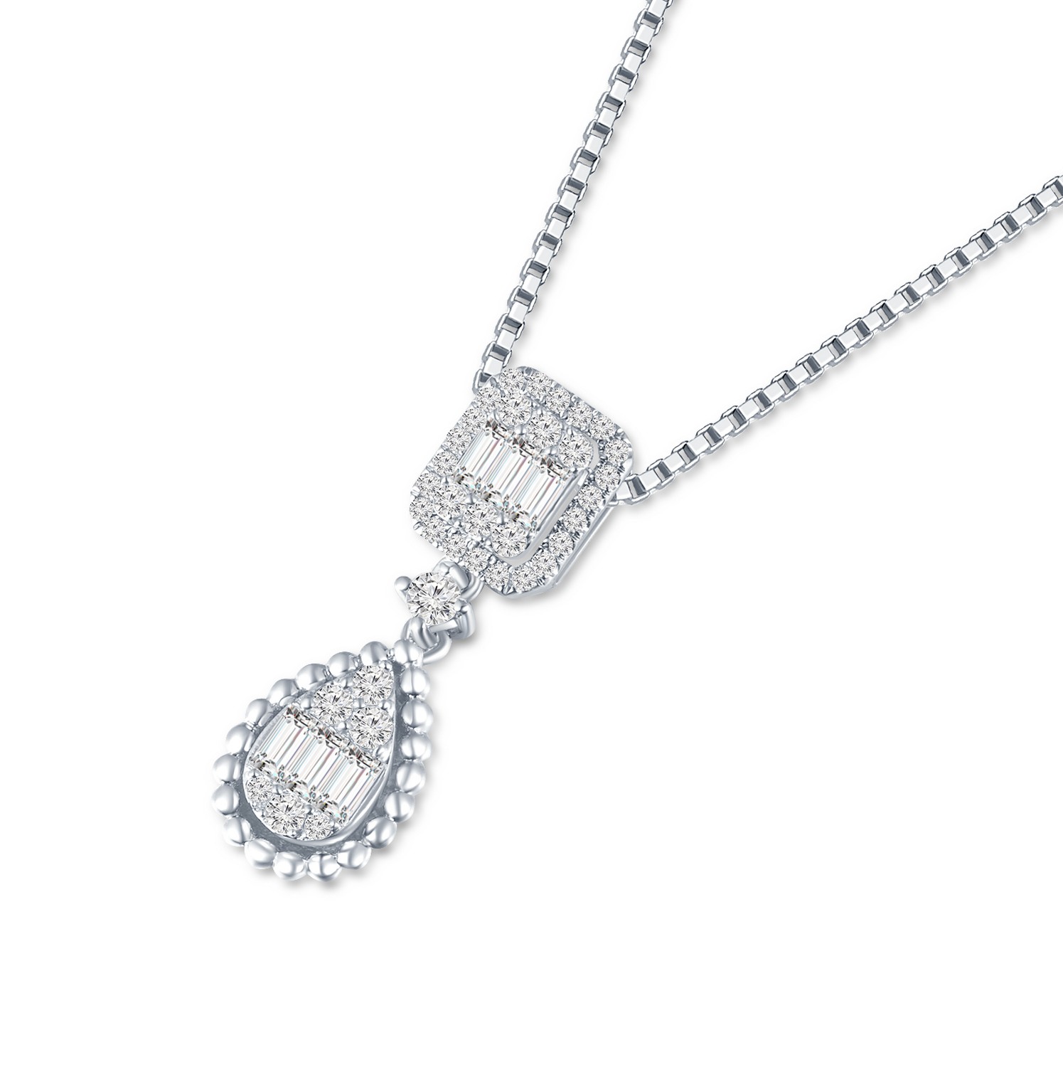 18K 白色黃金天然鑽石吊墜