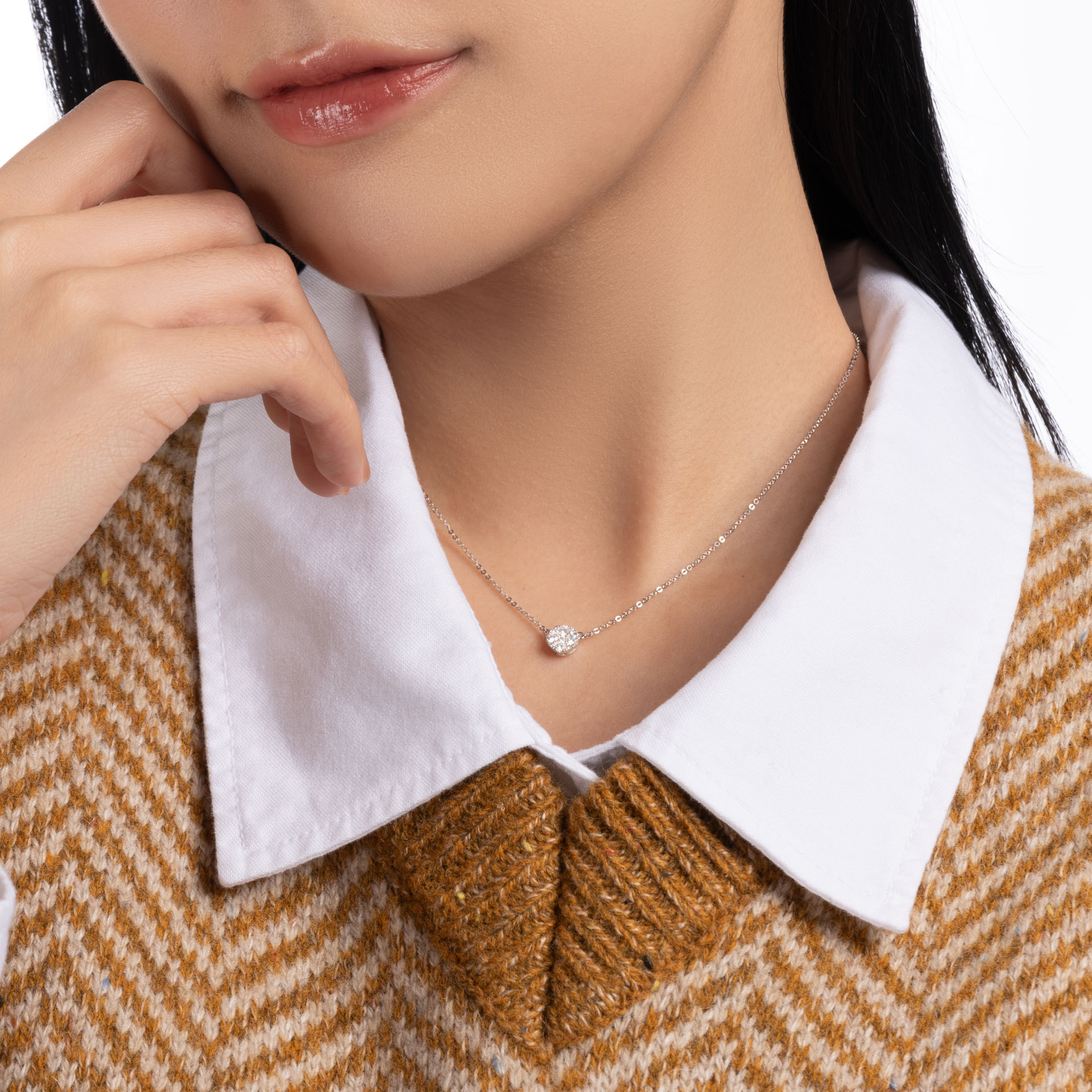 18K 白色黃金天然鑽石頸鍊