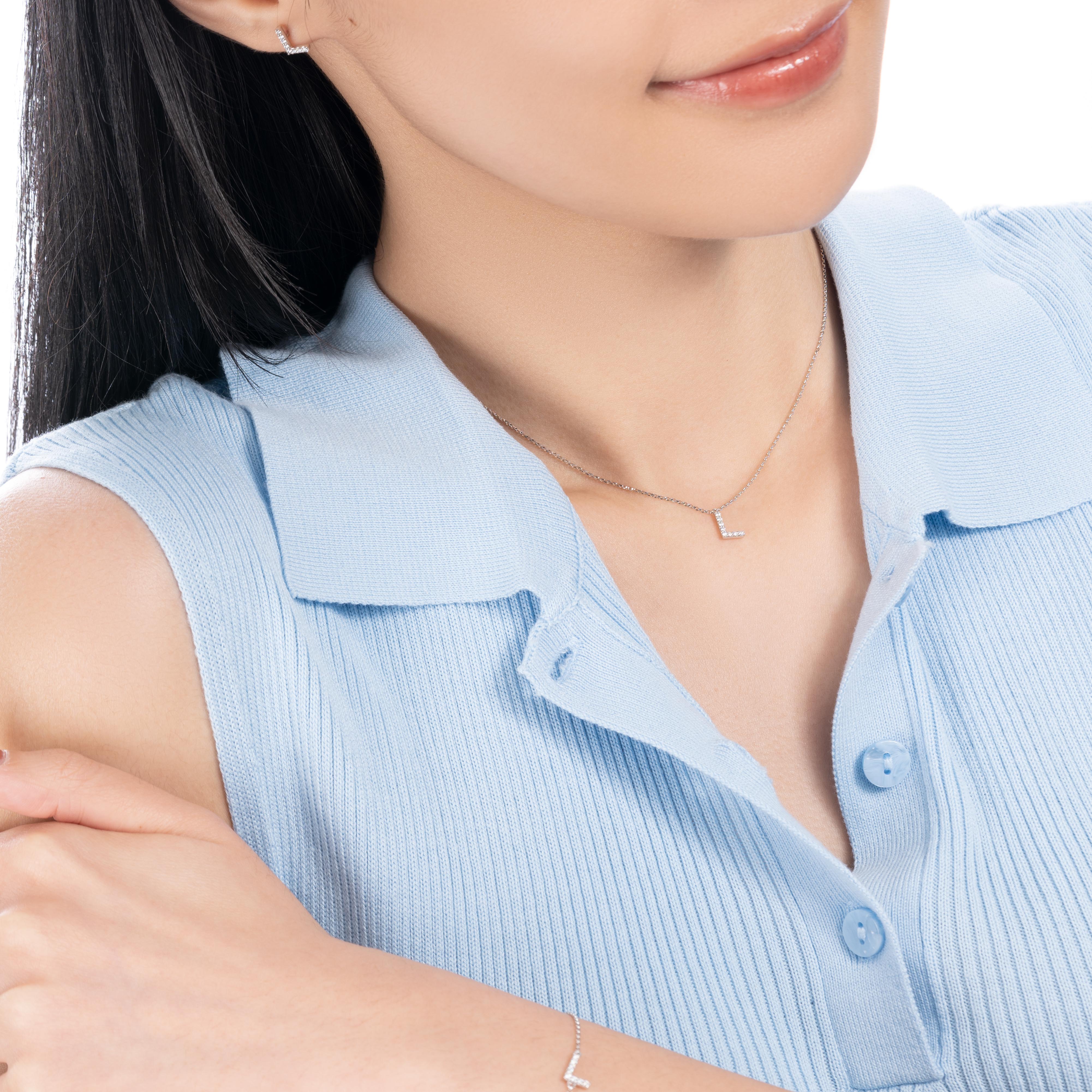14K 白色黃金天然鑽石頸鍊