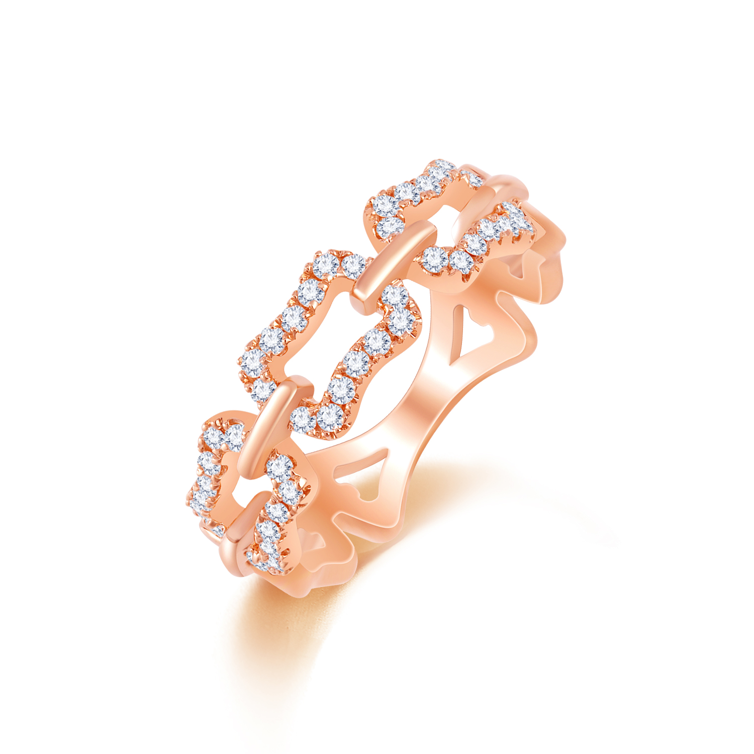 18K 紅色黃金天然鑽石戒指