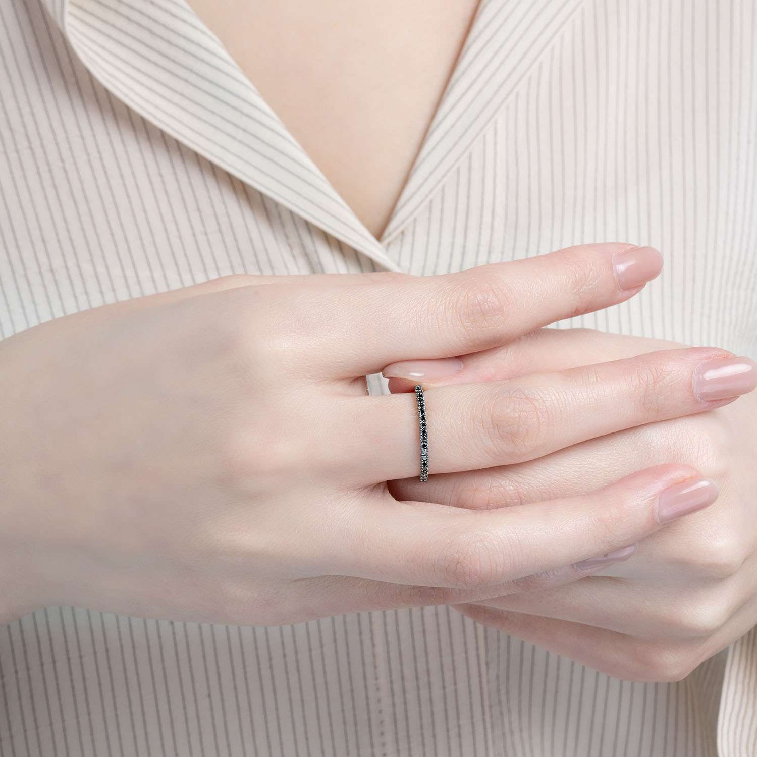 18K 黃金鍍黑天然鑽石戒指
