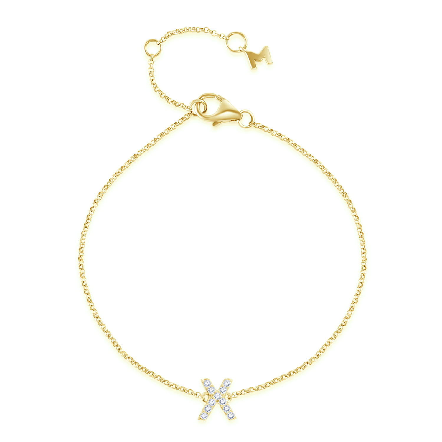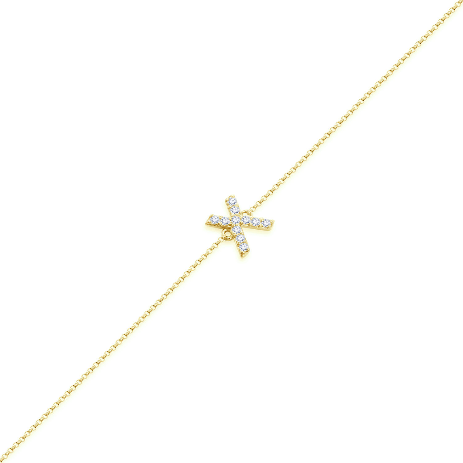 14K 黃色黃金天然鑽石手鏈