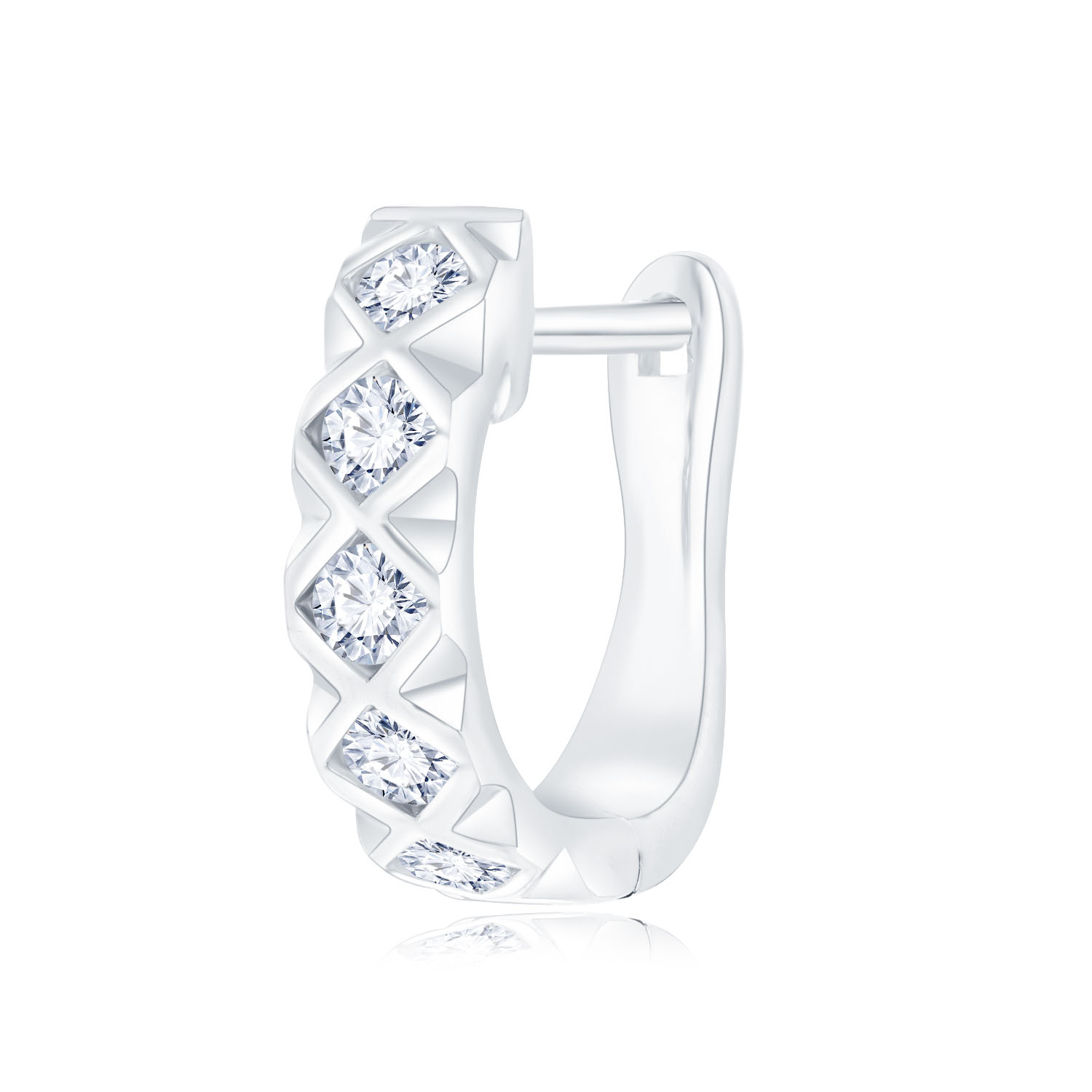 18K 白色黃金天然鑽石單隻耳環
