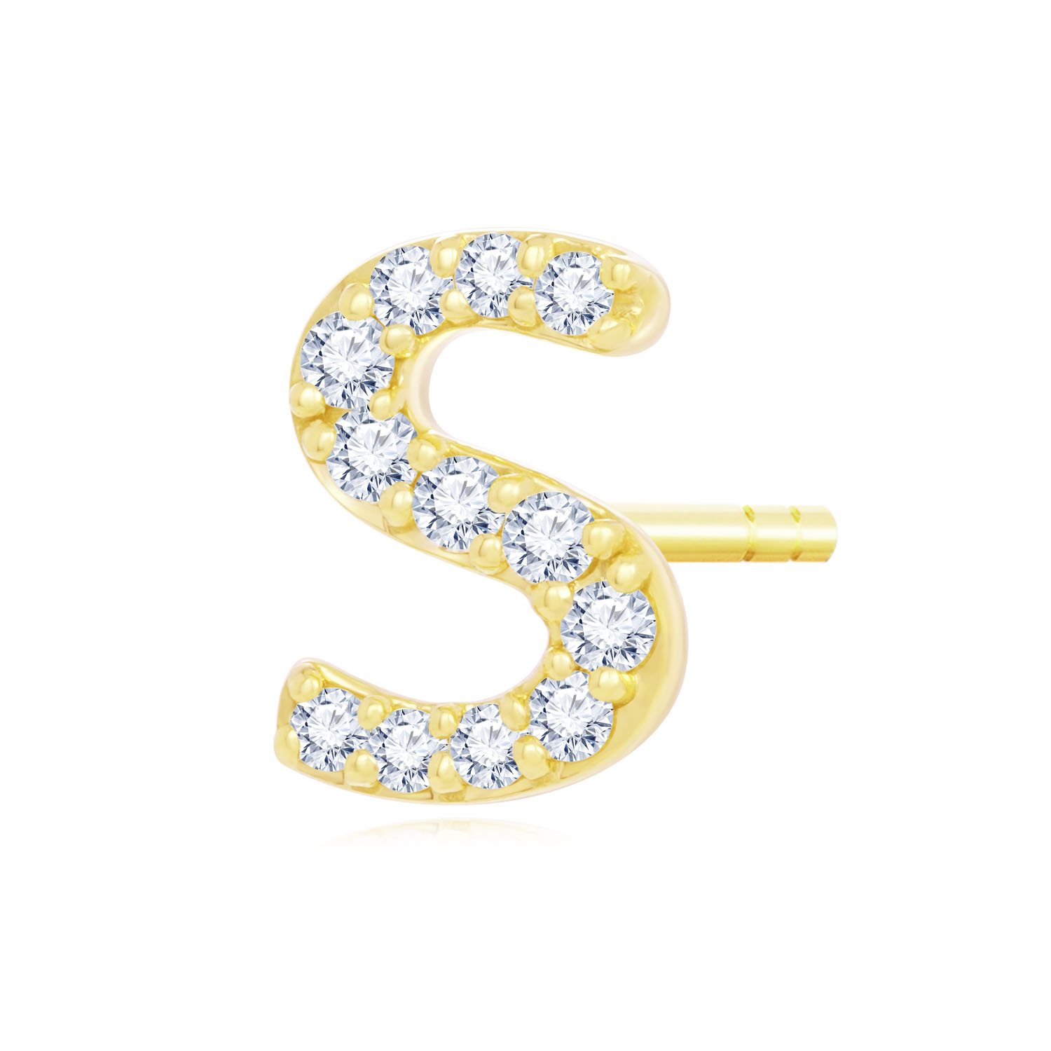 14K 黃色黃金天然鑽石單隻耳環